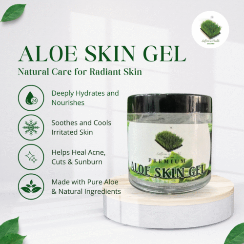 Introducing Saffron’s Aloe Vera Skin Gel – a revitalizing skincare essential made with 100% organic Aloe Vera, designed to hydrate, soothe, and protect your skin naturally. Extracted from the finest Aloe Vera plants, this lightweight gel is carefully formulated to retain maximum purity and effectiveness.