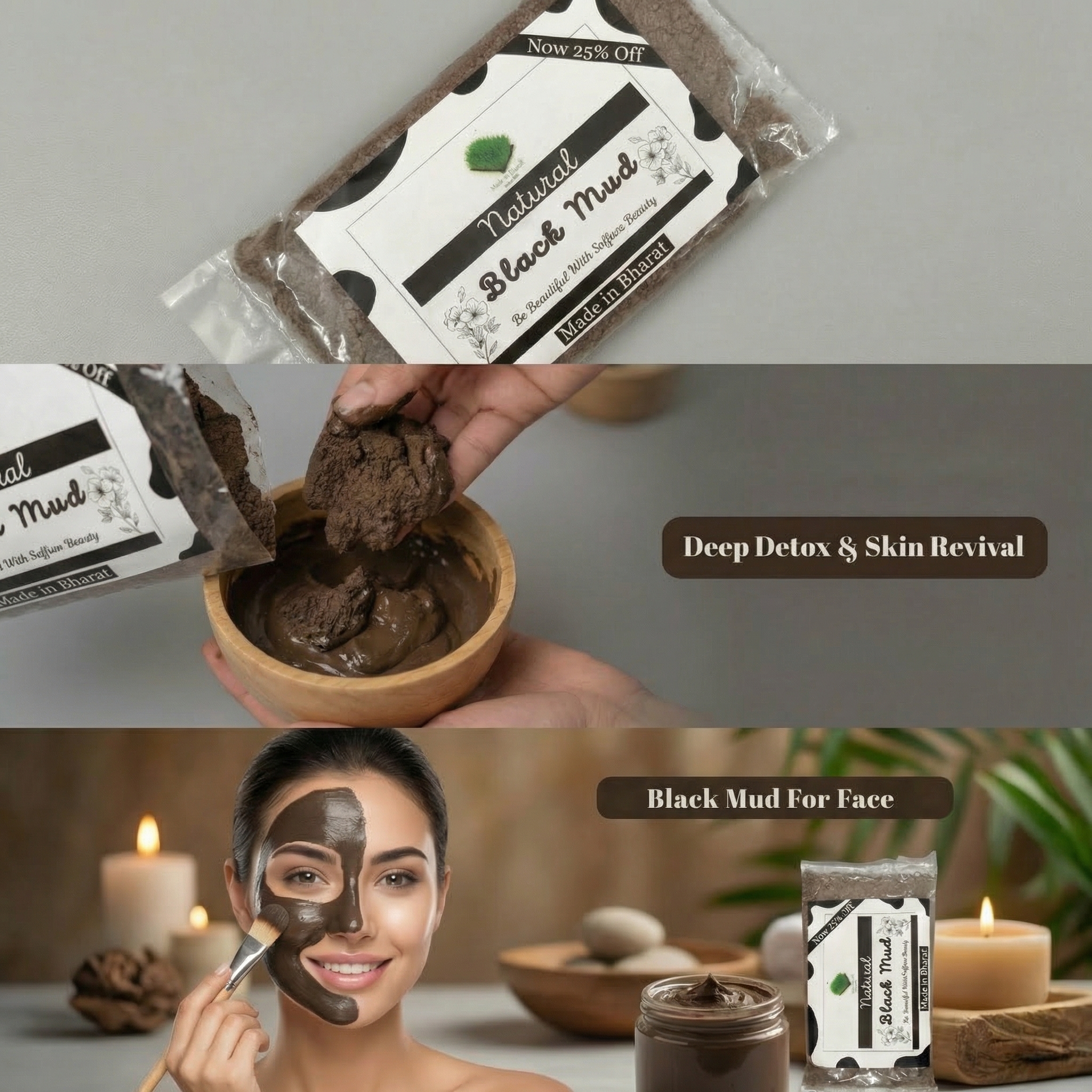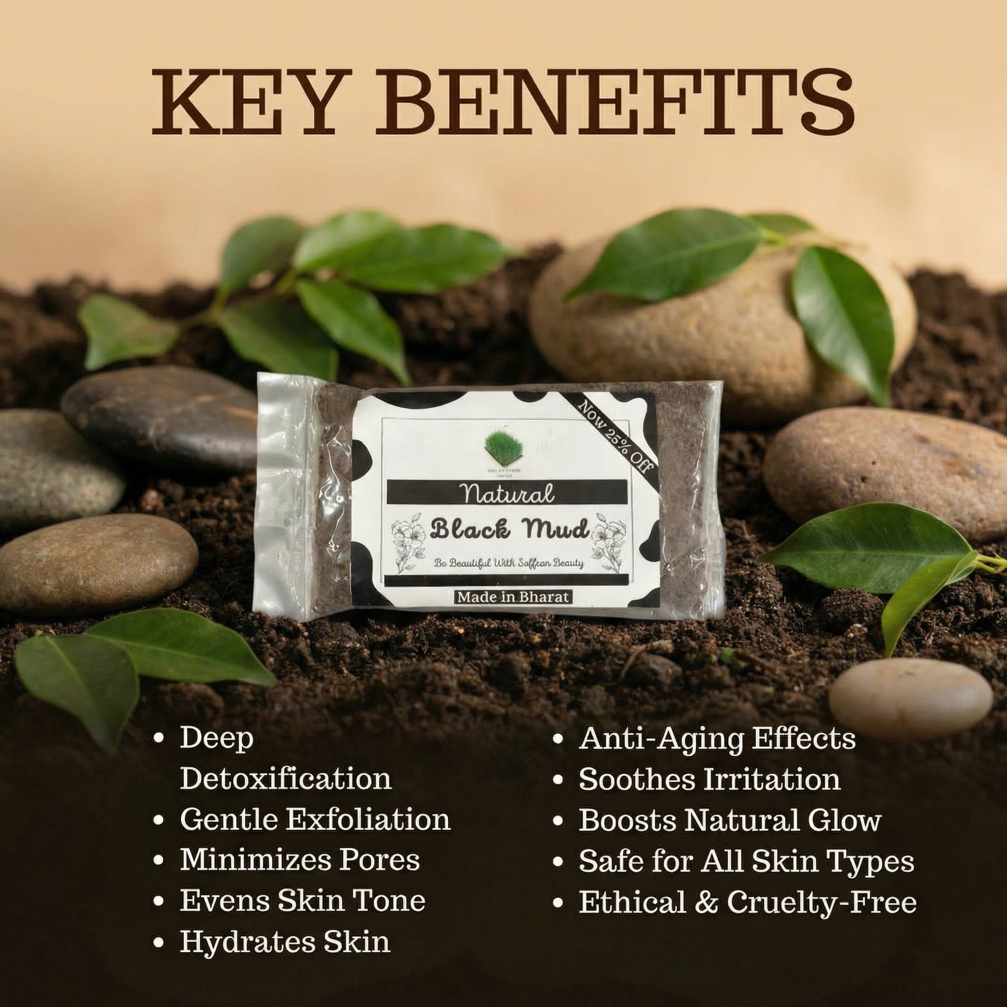 Ingredients: 100% Pure Black Mud – Rich in minerals, gently exfoliates, detoxifies, and soothes the skin. Key Benefits: Deep Detoxification Gentle Exfoliation Minimizes Pores Evens Skin Tone Hydrates Skin Anti-Aging Effects Soothes Irritation Boosts Natural Glow Safe for All Skin Types Ethical & Cruelty-Free