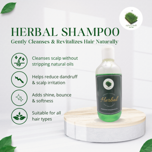 Introducing Saffron’s Herbal Shampoo, a gentle and effective hair care formula enriched with the natural goodness of Aloe Vera and Amla. Crafted from premium botanicals, this shampoo cleanses, nourishes, and strengthens your hair, promoting healthy, shiny, and vibrant locks. Ideal for all hair types, it offers a soothing, hydrating experience that supports scalp health and reduces hair fall.