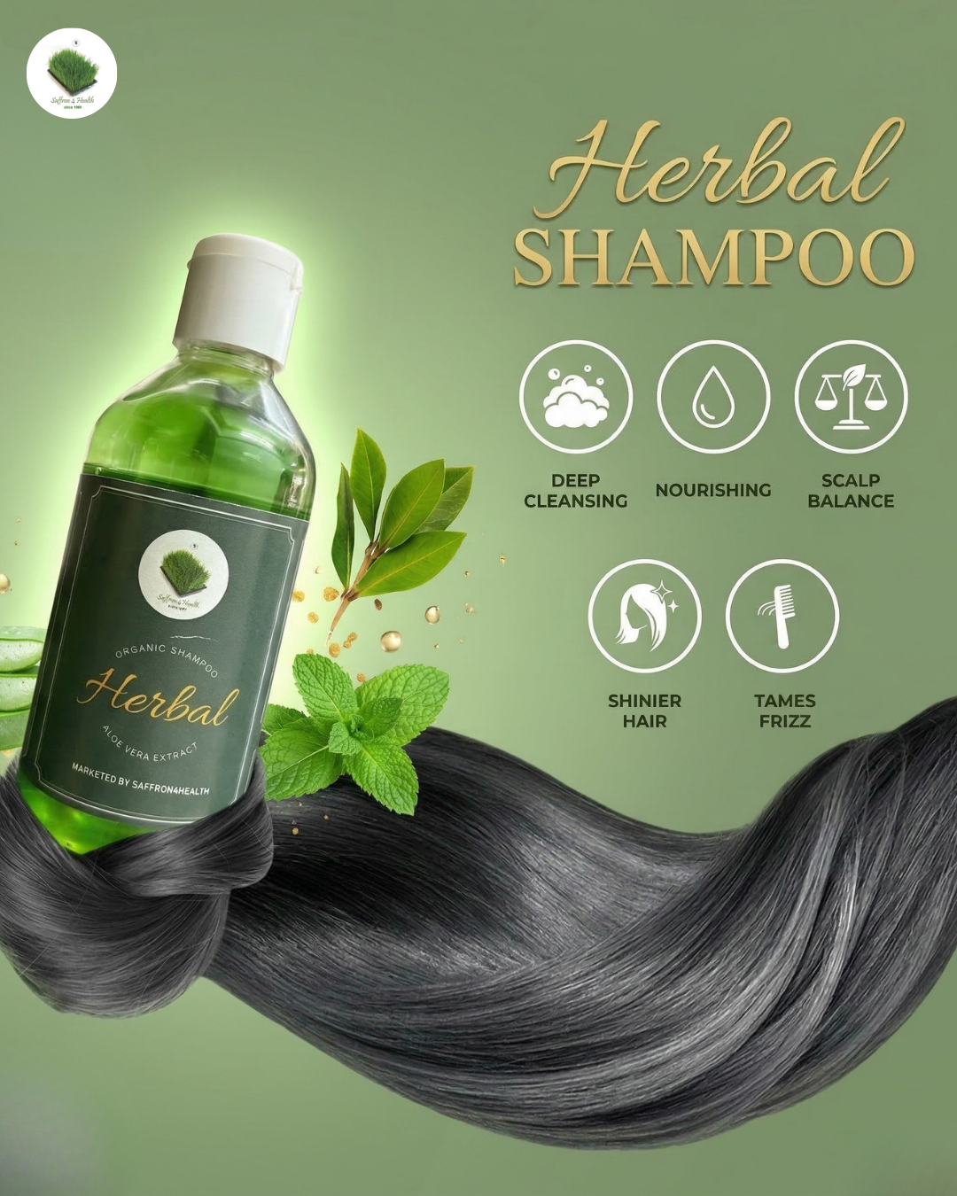 Introducing Saffron’s Herbal Shampoo, a gentle and effective hair care formula enriched with the natural goodness of Aloe Vera and Amla. Crafted from premium botanicals, this shampoo cleanses, nourishes, and strengthens your hair, promoting healthy, shiny, and vibrant locks. Ideal for all hair types, it offers a soothing, hydrating experience that supports scalp health and reduces hair fall.