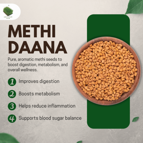 Ingredients: Methi (Fenugreek) Seeds Benefits: Supports blood sugar balance Promotes weight management Boosts heart health Contains anti-inflammatory compounds Aids digestion and helps with loss of appetite